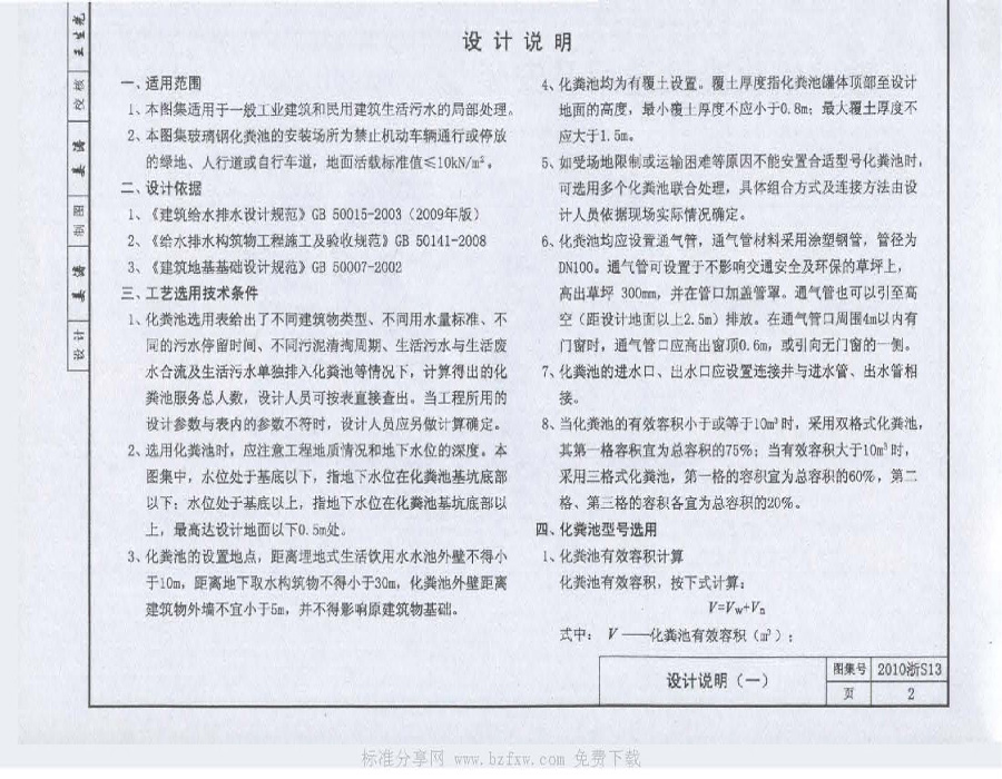 2010浙S13 玻璃鋼化糞池選用及安裝